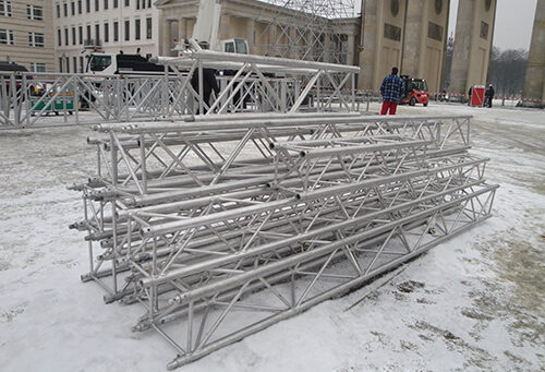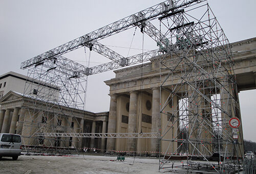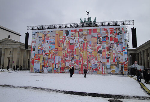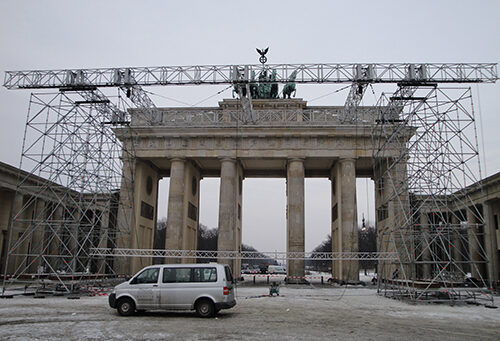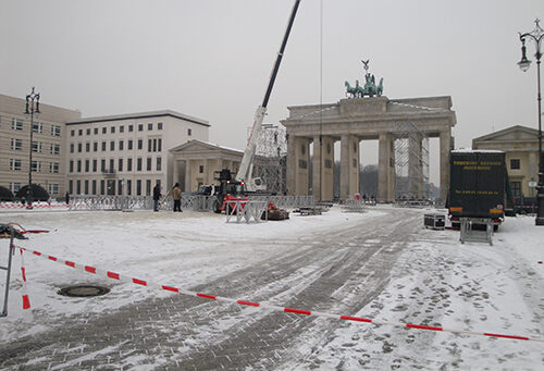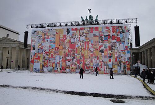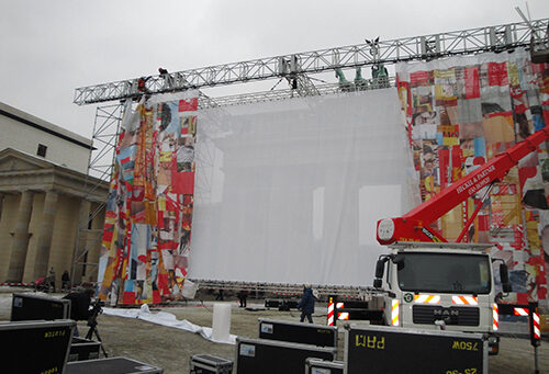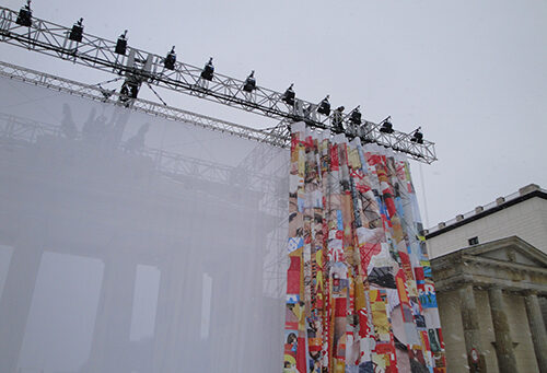 Und dann folgte der Moment, auf den alle Beteiligten sehnlichst gewartet hatten. »The Curtain« wurde zum Brandenburger Tor transportiert. Dort wurde er aufgehängt. Passanten blieben stehen und staunten, was in Berlin doch so alles geht. An einem unheimlich kalten Freitagabend im Februar 2010 war es dann soweit: »The Curtain« öffnete sich für die Premiere der restaurierten Fassung des Fritz Lang-Klassikers »Metropolis«. Der Film war 1927 erschienen und mit rund 5 Millionen Reichsmark der teuerste Film dieser Zeit. Dazu kam, dass »Metropolis« weder bei Kritik noch beim Publikum sonderlich gut ankam. Der Aufstieg zum Klassiker folgte erst deutlich später. Diese restaurierte Fassung flimmerte nun an diesem kalten Freitagabend im Februar 2010 über die Open Air-Leinwand, die extra für diesen Abend aufgestellt worden war. »The Curtain«, das Brandenburger Tor und das Hotel Adlon respektive der Platz vor dem Hotel bildeten eine würdige Kulisse für diese Veranstaltung.